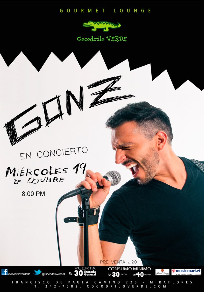 Lima, 10 de septiembre de 2016 – Luego de años componiendo y grabando los temas de su nuevo EP, GONZ. presentará su material el próximo miércoles 19 de Octubre con un show en vivo en el Cocodrilo Verde de Miraflores.