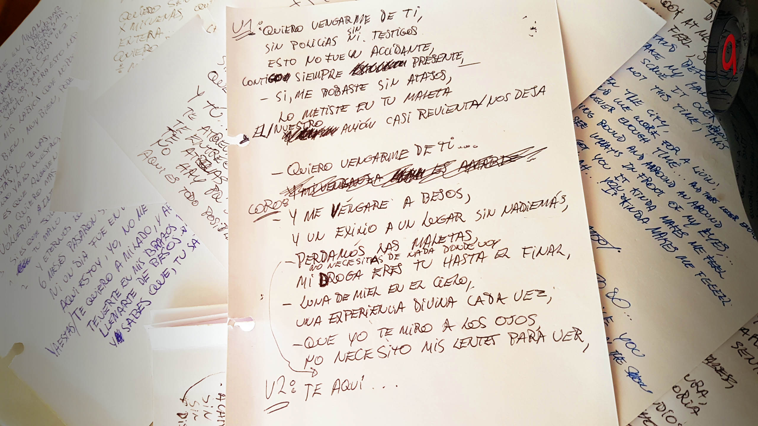 escuchando, ¿cómo podría lograr que una venganza sonara como algo positivo?, y justo cuando la profesora me pregunta por la historia, que yo claramente no había escrito, me llegó una melodía a la cabeza, un ritmo determinado, y la idea de que “me vengaría a besos”.