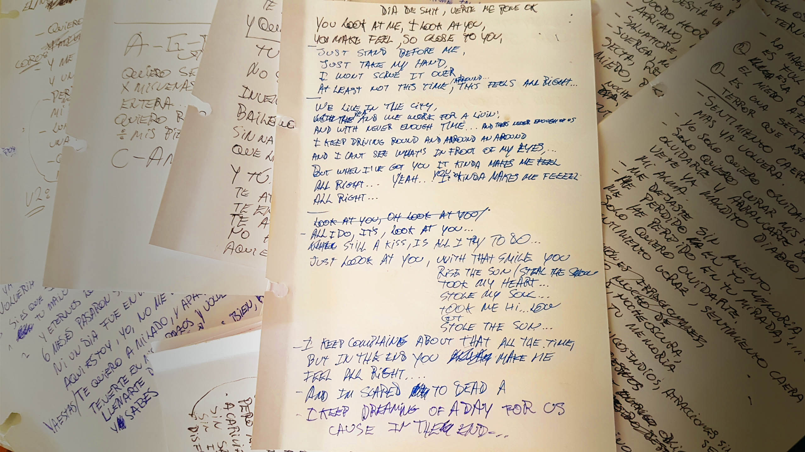 También sabia que el coro debía ser sobre el caos de la vida en la ciudad todo el día corriendo en el trafico infernal de la capital. Pero el ritmo me sonaba bien pop, y tenia que llevarlo a que me «sintiera bien», así me di cuenta que el tema podía ser el de una pareja que se quiere, se aman, pero en la